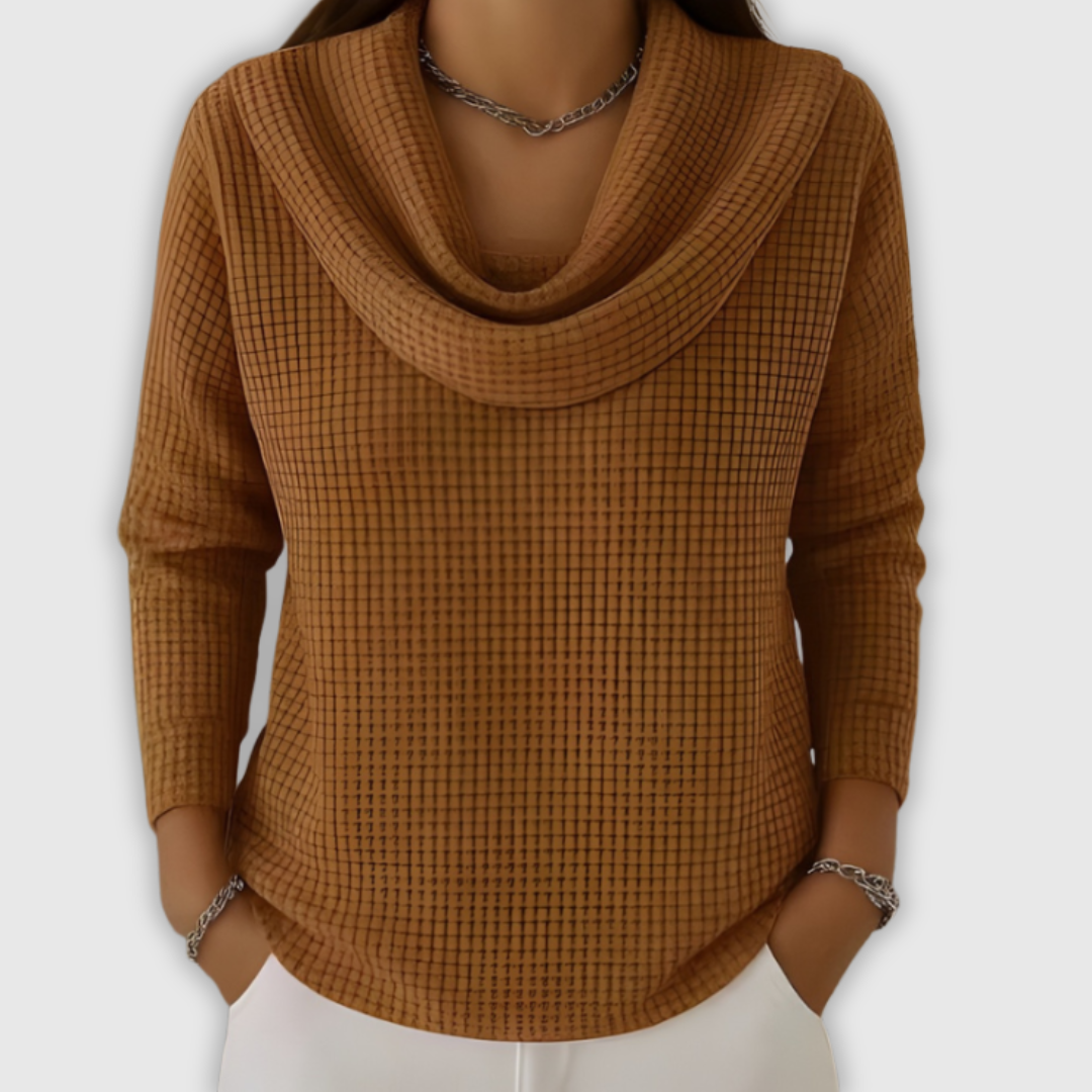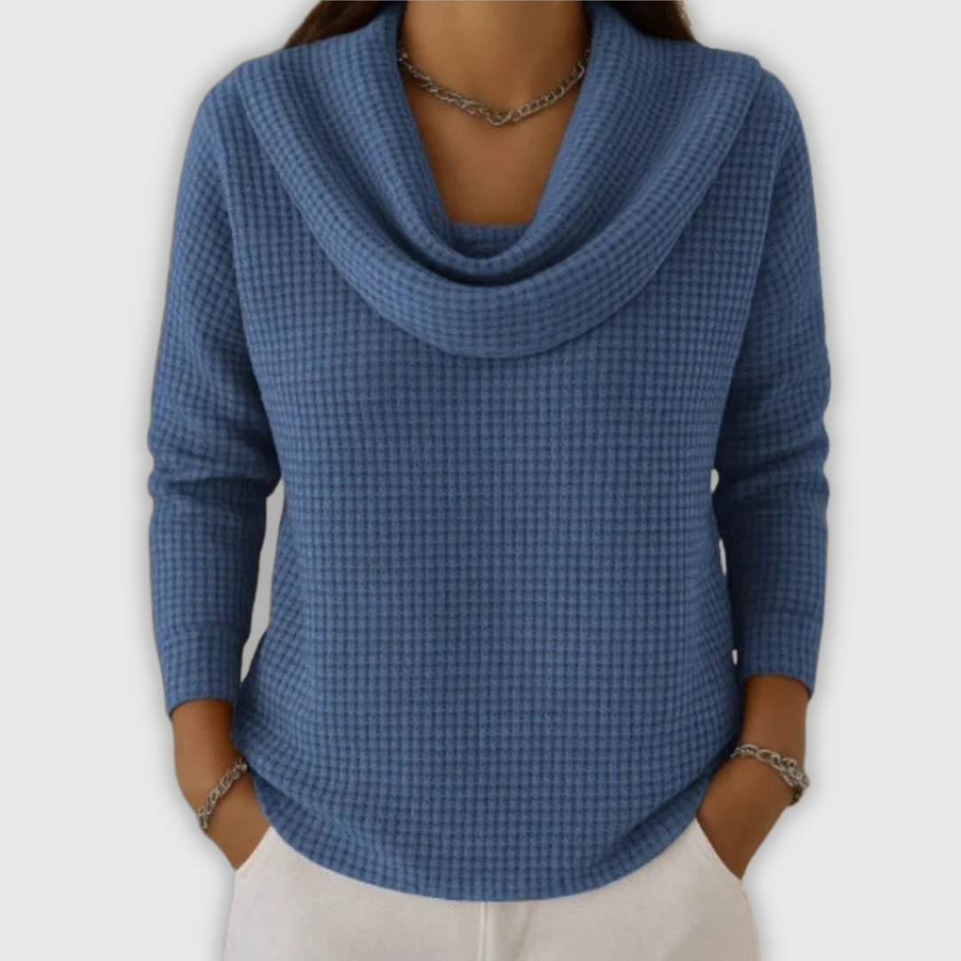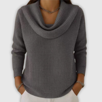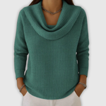 Ambera – Ciepły sweter waflowy z eleganckim dekoltem typu woda