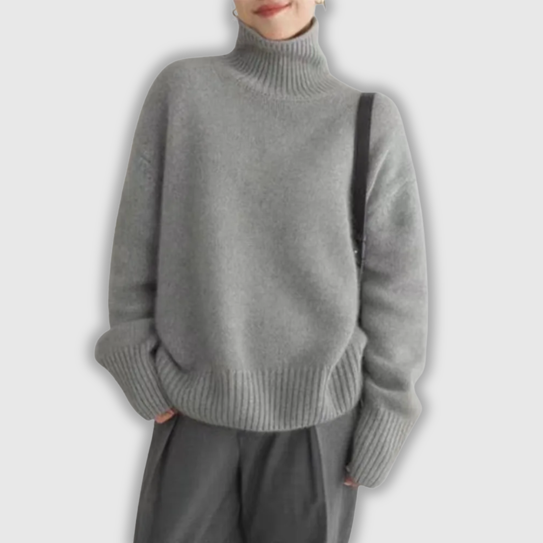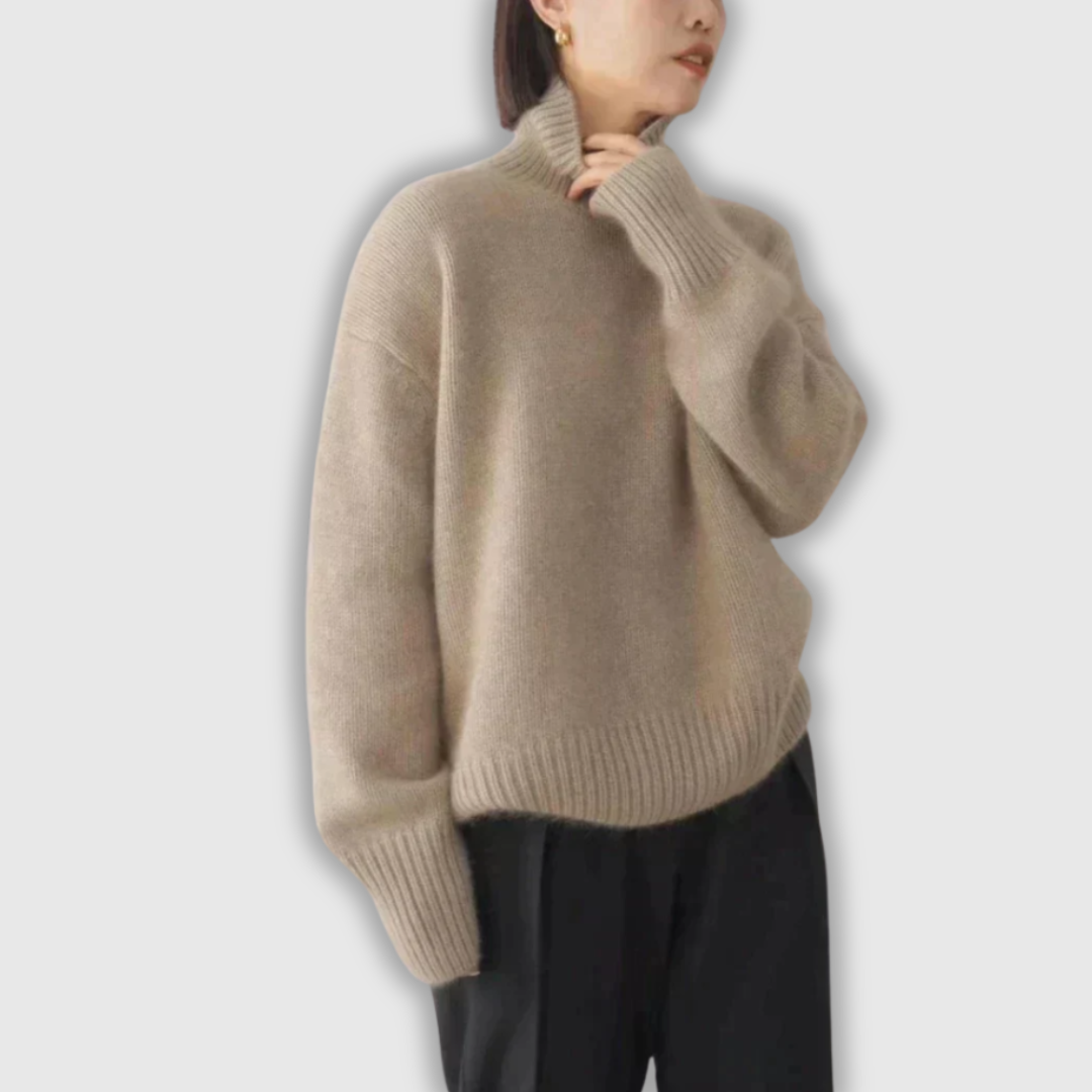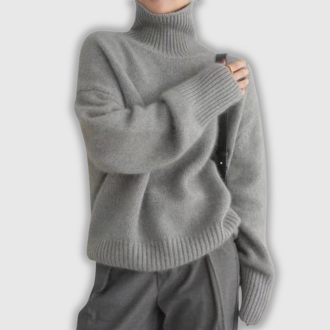 Izabela to luksusowy, miękki golf wykonany z domieszką kaszmiru, który otula ciepłem i elegancją. Jest lekki, przyjemny w dotyku i idealny do codziennych i wyjściowych stylizacji.